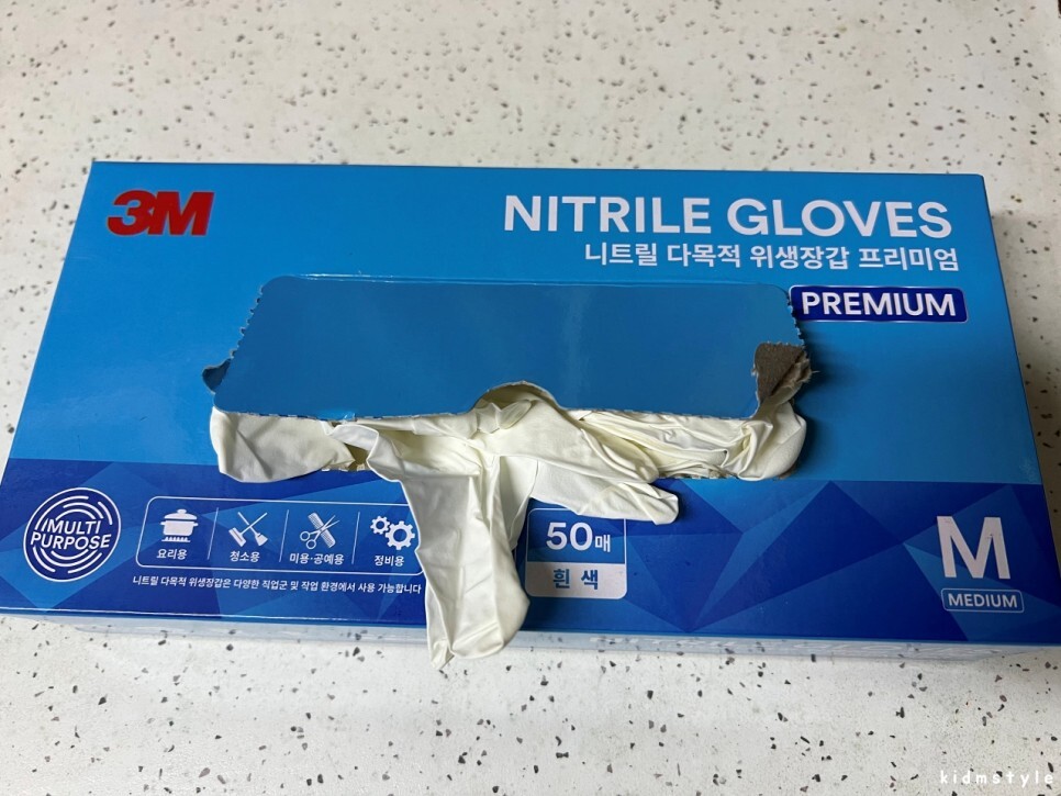 요리할 때 니트릴 위생장갑이 딱이다. 3m 이 제품은 일반적인 성인 남성 기준으로 M 사이즈를 하면 타이트하게 딱 맞고 좋다.