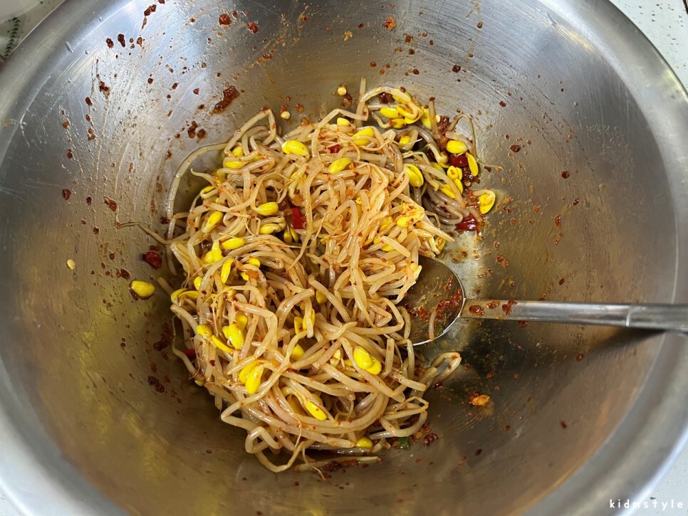 콩나물 한 봉지를 사면 반은 콩나물국, 반은 콩나물무침으로 요리하는 게 국룰이다.