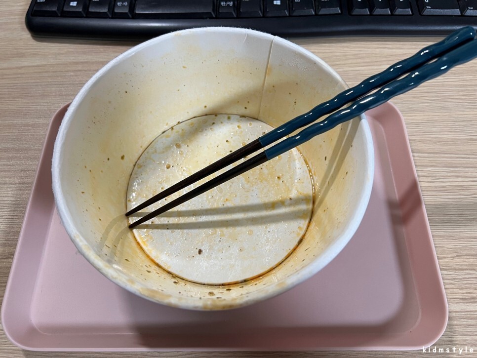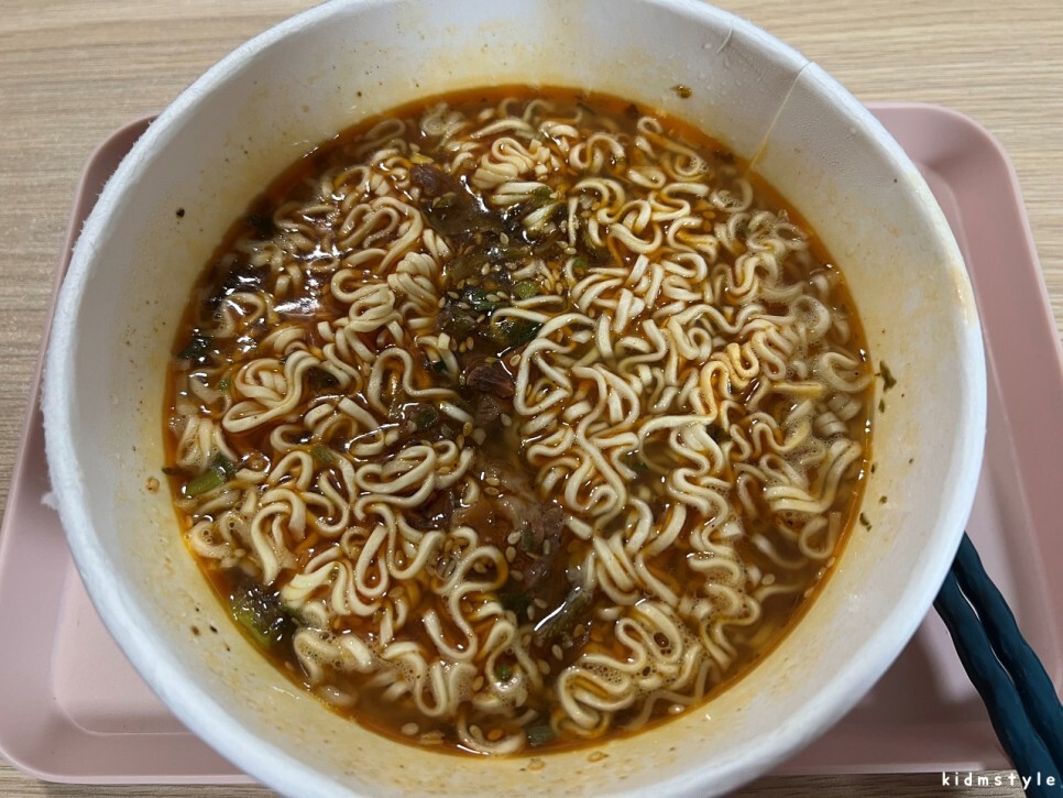 깔끔하게 비웠다. 다음에 또 사 먹어야겠다. 우육면 컵라면의 퀄리티가 꽤 괜찮다. 맛있게 잘 먹었다.