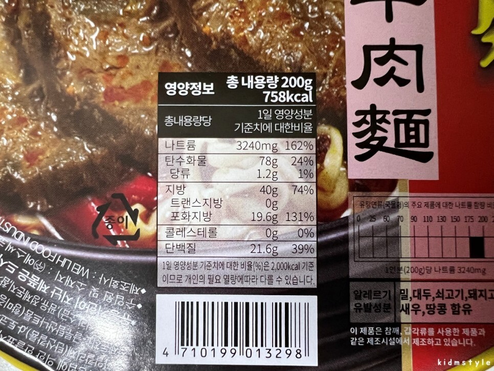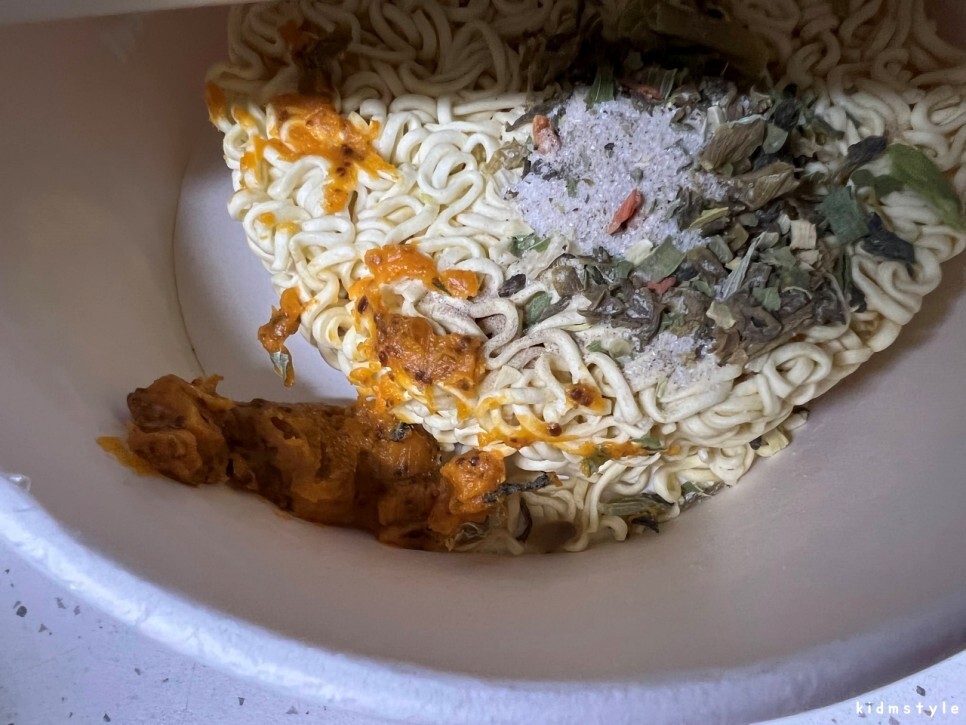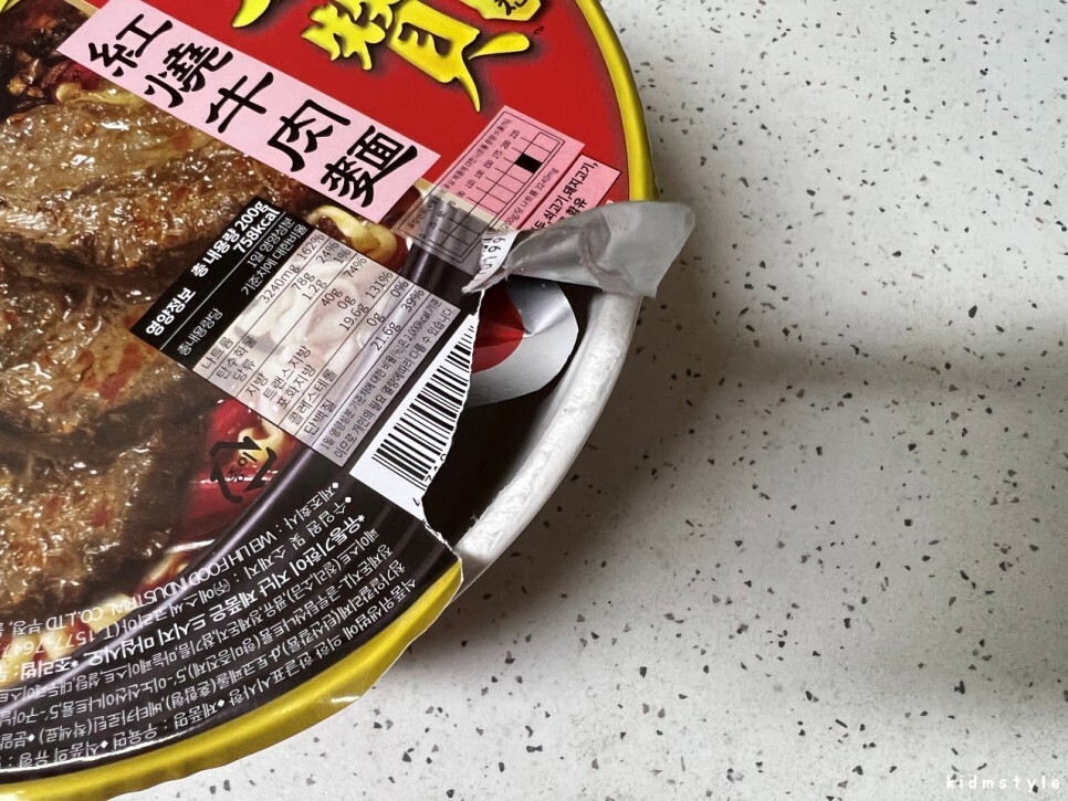 포장이 아오~ 참 그렇네. 뚜껑이 찢어지기 쉽고 컵라면 컵 자체가 흐물거리며 탄탄함이 덜하기 때문에 조심해야 한다.