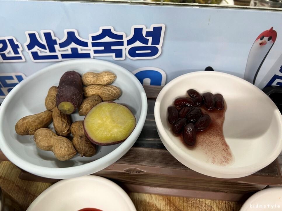 술안주로 인기가 많은 물 고구마와 찐 땅콩, 그리고 콩반찬