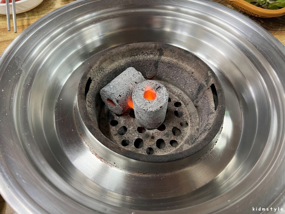 불은 갈탄 2알이 들어온다. 조리가 다 되어 나온 음식을 데우는 개념이라 이 정도로 충분하다.