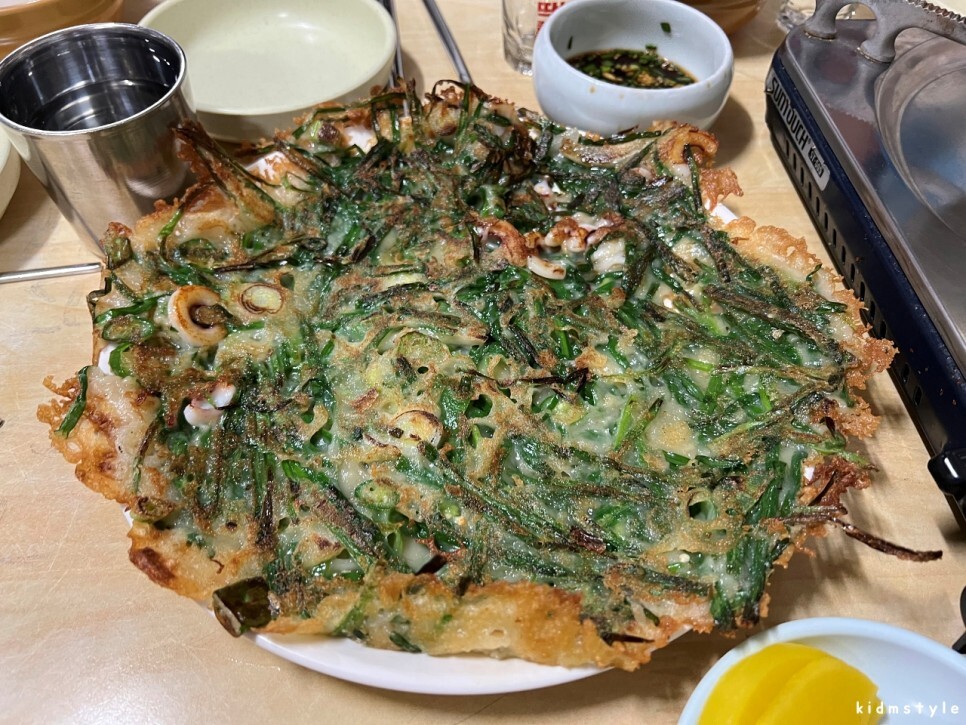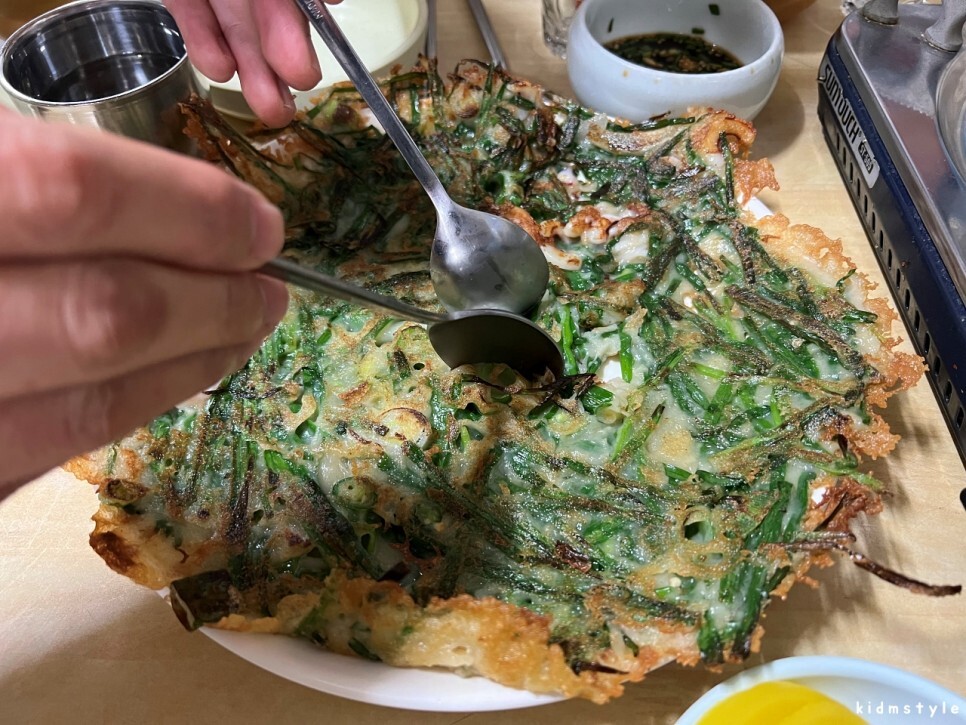 부추전은 숟가락 2개로 죽죽 잡아째는 게 국룰아인교~ 역시 말안해도 알아서 잘 정리해 주네.
