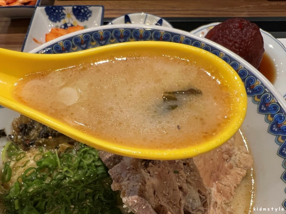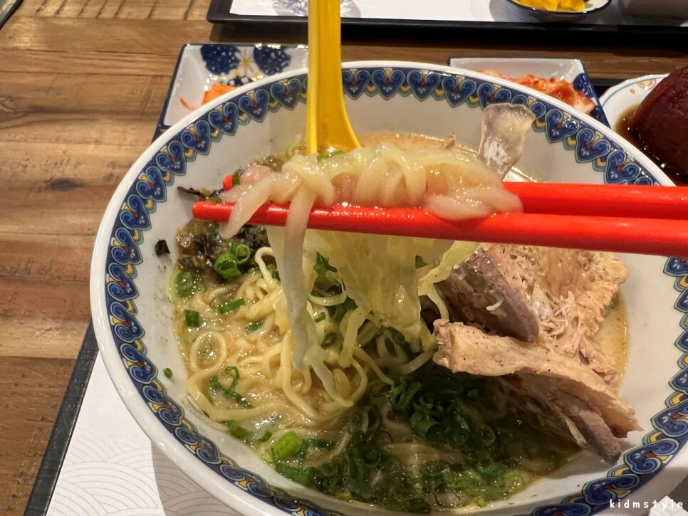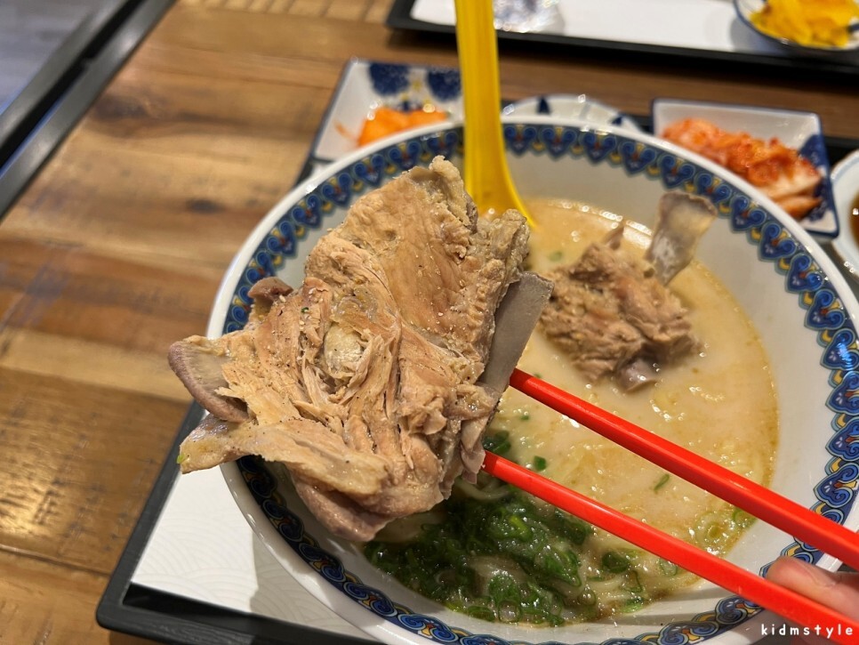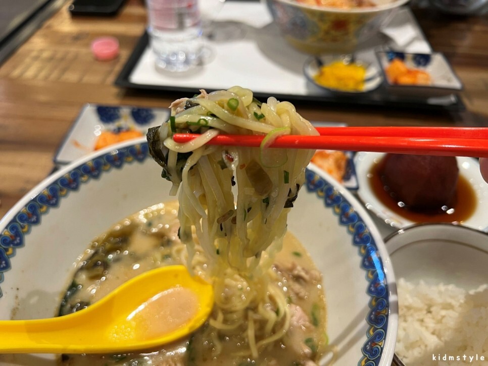 면은 부드러운 면발이다. 일본 현지 라멘의 카타 면과는 차이가 있다. 현지 라멘을 생각하고 접근한다면 면에서 호불호가 조금 갈릴듯하다.