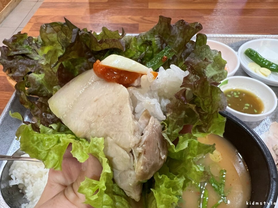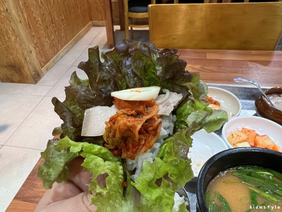 밥도 말아봅니다. 수백의 장점입니다. 쌈도 싸먹고 국밥처럼도 먹을 수 있습니다.