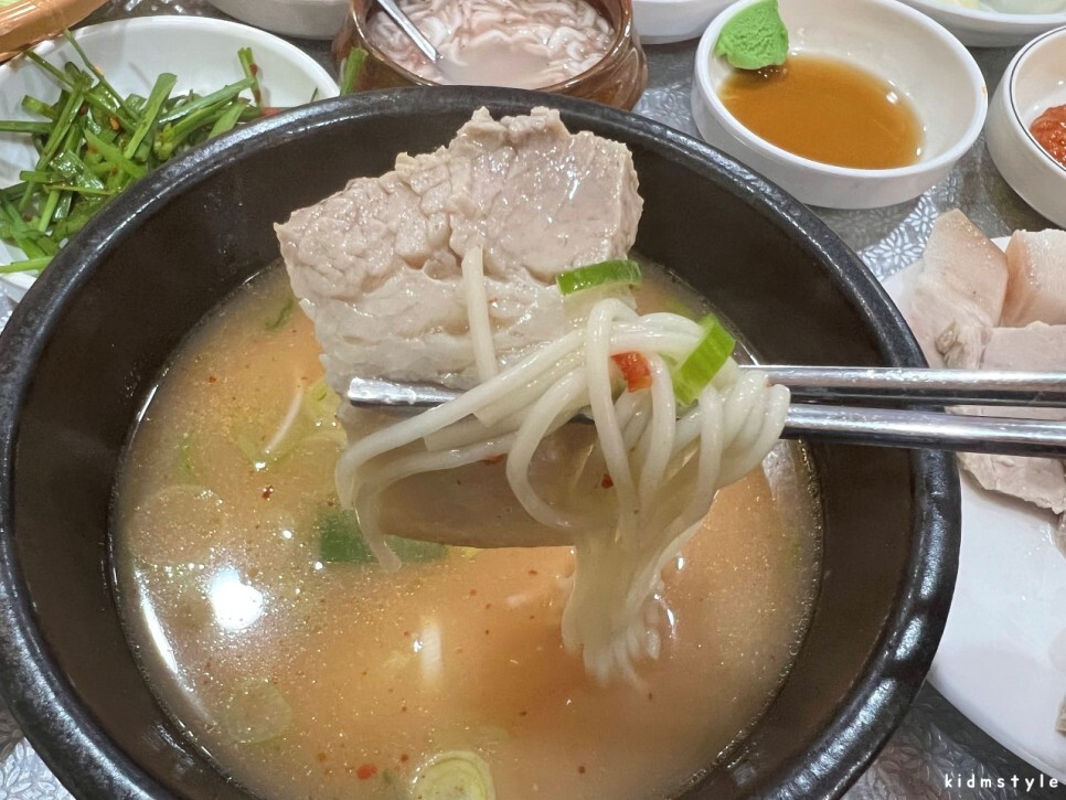 고기 몇 점을 국물에 넣으면 돼지국밥이 되죠.