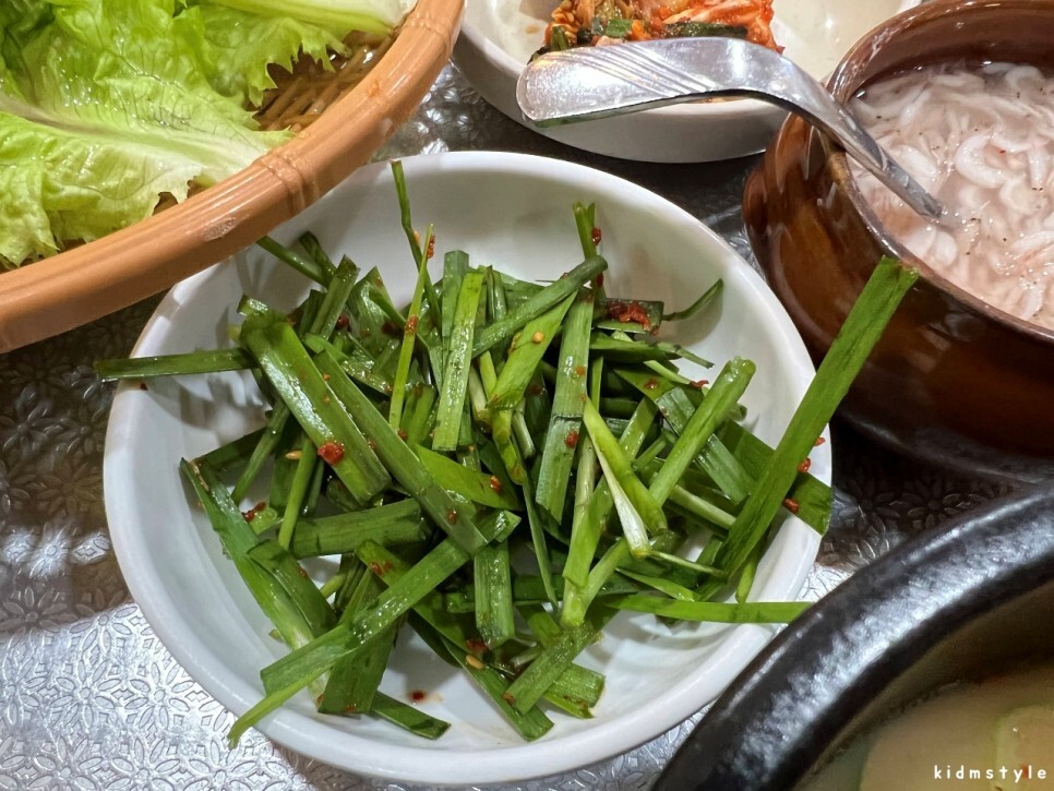 신선한 부추도 양념이 과하지 않게 적당히 잘 무쳐놨습니다.