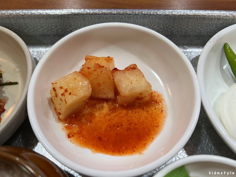 아삭아삭하게 잘 익은 깍두기는 입맛을 돋게 해줍니다.