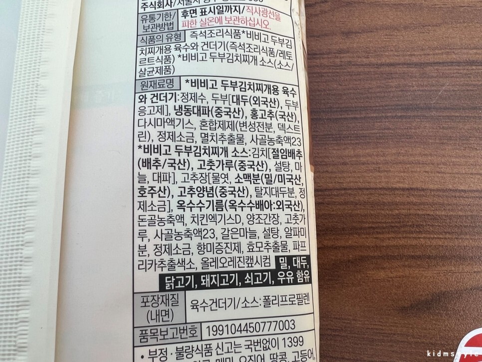 개봉하고 꺼내보았다. 김치 소스와 육수와 건더기 등이 들어가 있다.