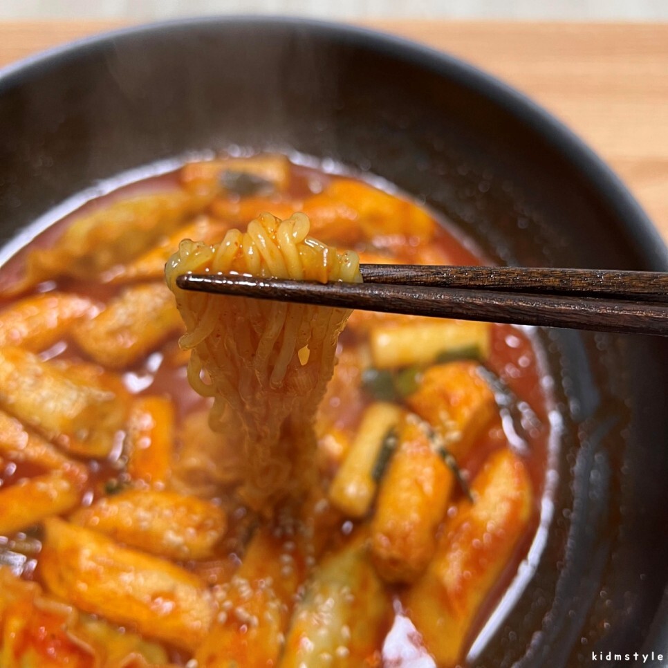 라면 면발에 제대로 양념이 배어있다. 이 정도 되어야 떡볶이 좀 만든다고 명함을 내밀 수 있다.