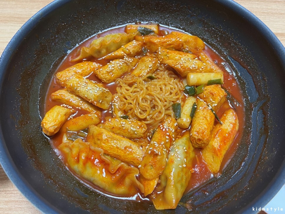 미리 냄비에 라면 반개를 끓였고 떡볶이가 마무리될 때쯤 라면도 같이 살짝 볶아준다.