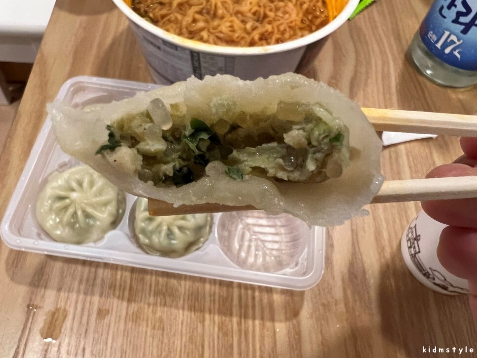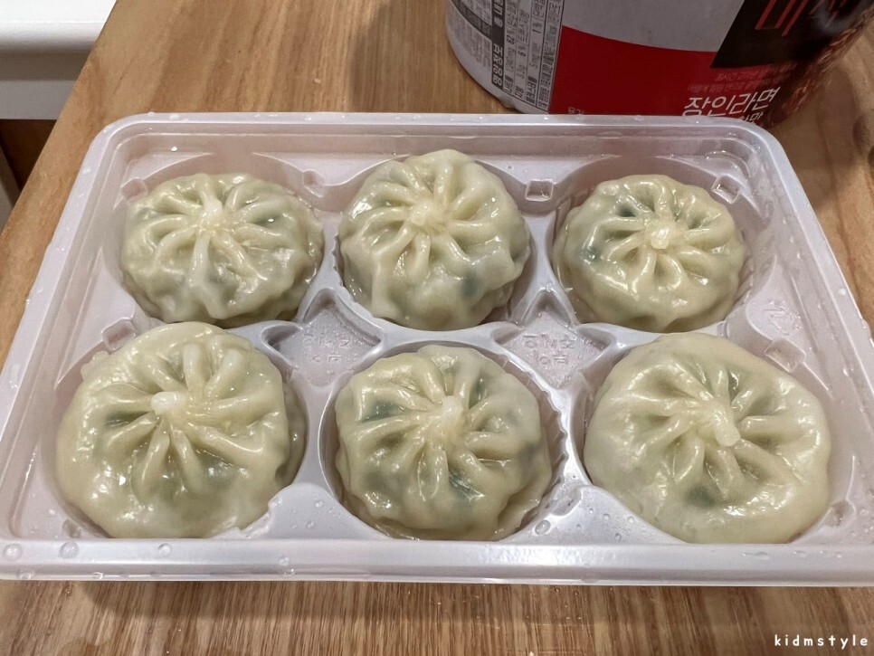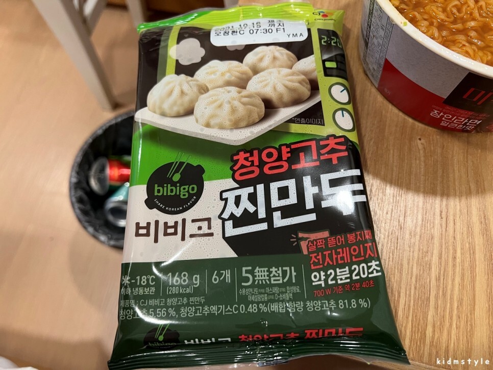 라면만 먹기는 조금 아쉬워서 같이 구입한 비비고 청양고추 찐만두이다. 편의점 가격 3,200원이다. 어떤 맛을 보여줄지 상당히 궁금하다. 이 제품 역시 편의점에서 전자레인지에 돌려왔다.