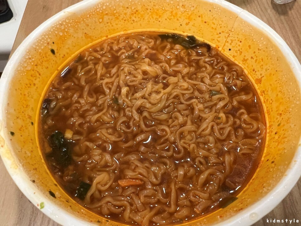편의점에서 물을 붓고 숙소까지 들고 왔다. 아, 너무 맛있어 보인다.