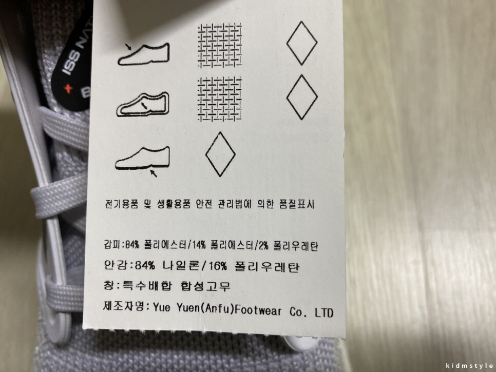 신발 끈을 매고 택을 제거하고 찍어봤습니다.