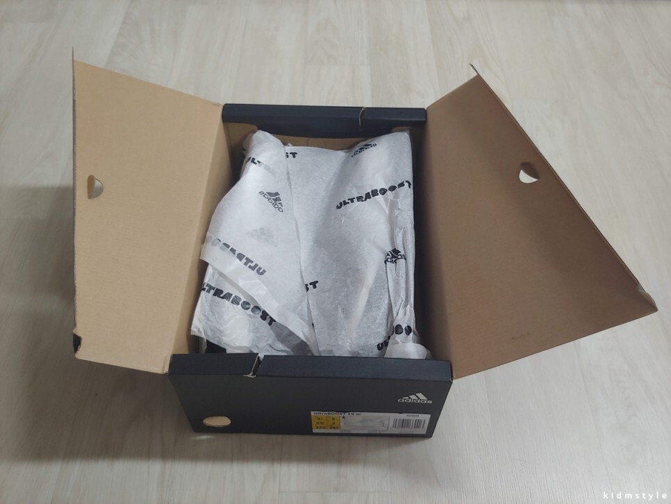 안쪽에는 울트라부스트와 아디다스 로고가 적힌 얇은 종이로 감싸져있습니다.
