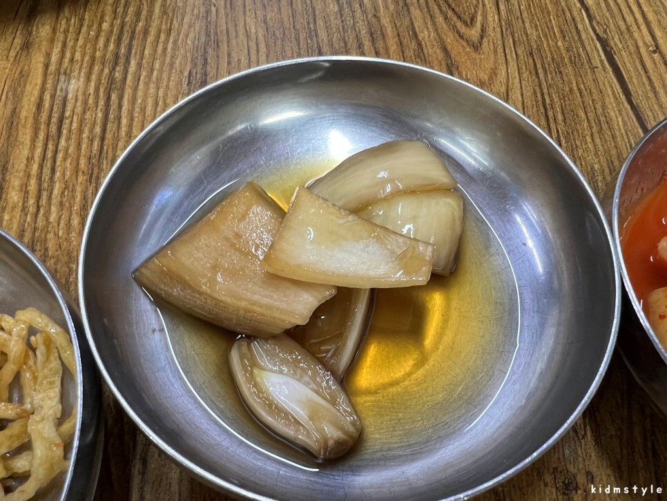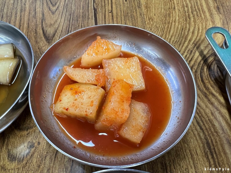 깍두기 역시 직접 담은 듯한 맛인데 적당히 잘 익었다. 물컹한 정도는 아니고 적당히 괜찮은 정도이다.