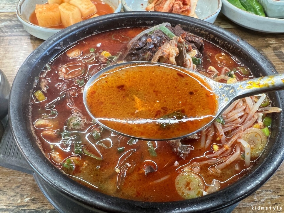 국물을 한 숟가락 떠보니 시원~~~하다. 10여 년 전보다 맛이 조금 빠진다고 말하는 이도 있지만 나 역시 오래간만에 맛보는데 솔직히 모르겠다. 그냥 맛있다.