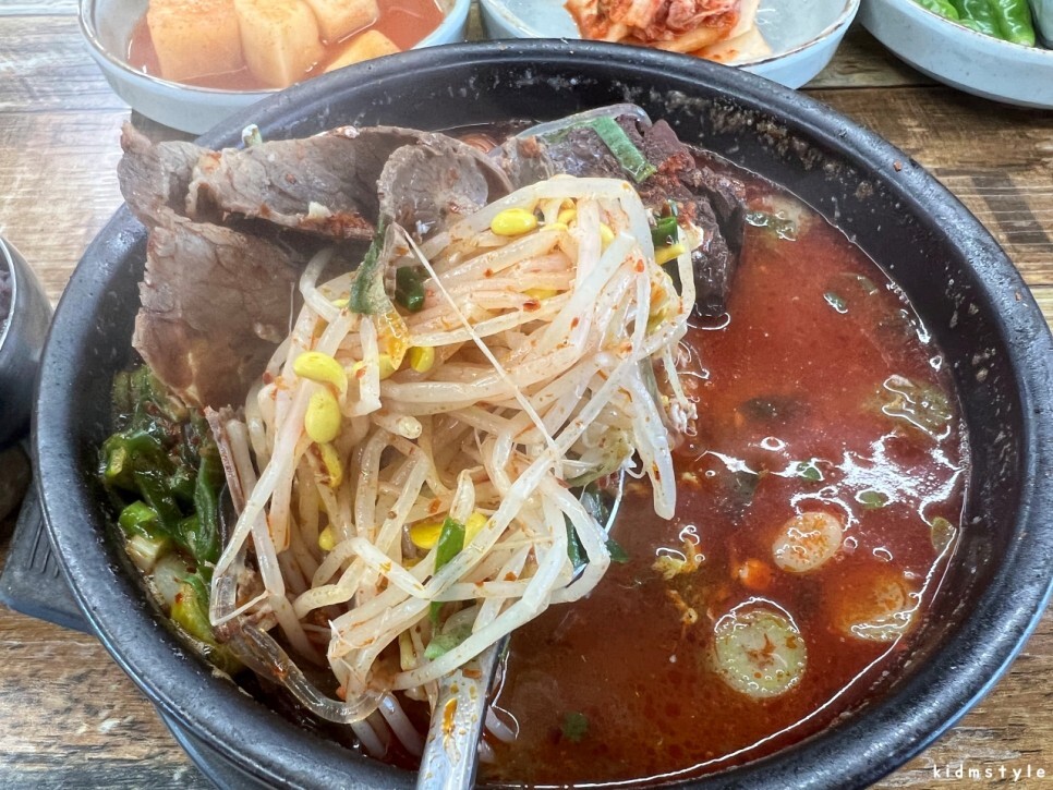 나는 선지를 정말 좋아한다. 커다랗고 신선한 선지가 들어가 있네. 늘 말하지만 가리는 음식이 없다. 너무 좋지 않은가? 나 역시 음식 가리는 거 없는 사람이 제일 좋다.