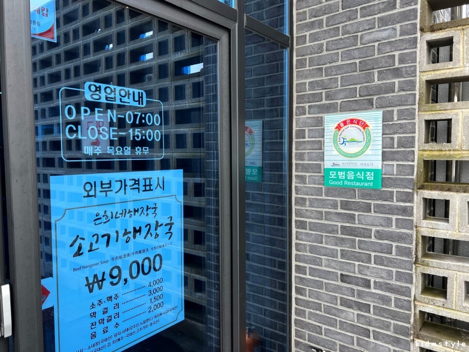 영업시간 : 오전 7시 ~ 오후 3시, 매주 목요일 휴무