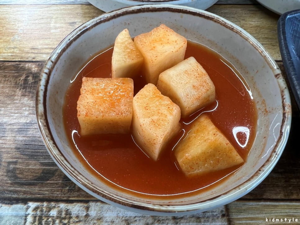 깍두기는 잘 익었고 먹기가 딱 좋은 그런 맛이다.