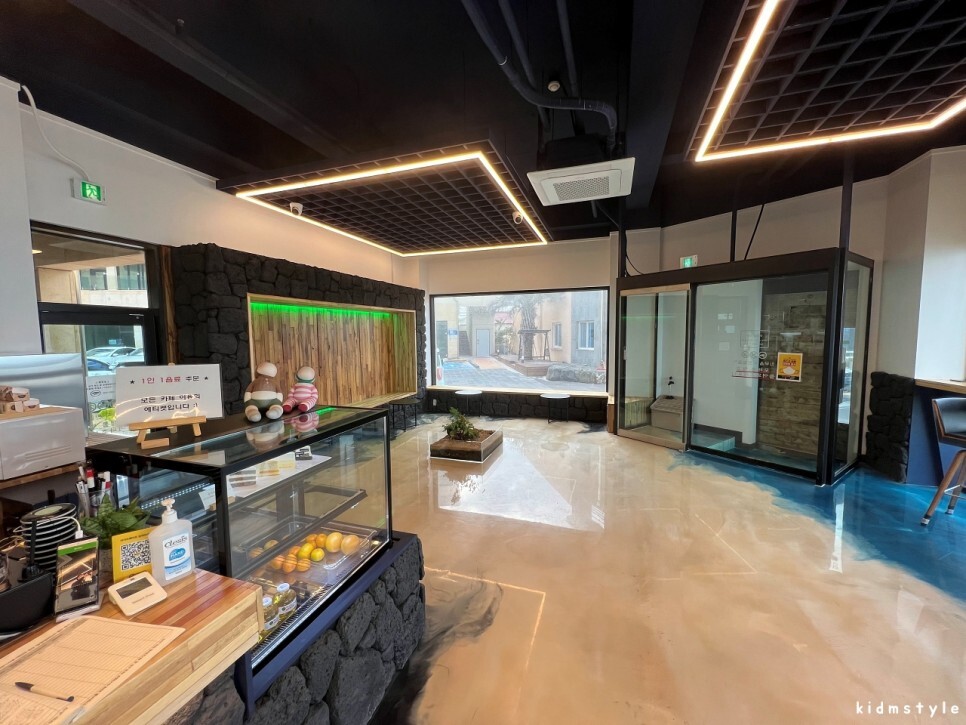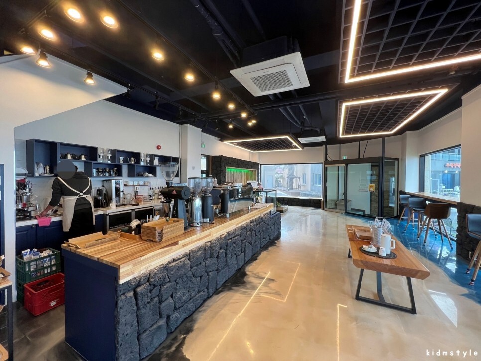 1층에서 음료가 만들어진다. 자세히 보면 바닥이 모래와 파도처럼 그려져 있다. 전반적으로 개방감이 있어서 괜찮은 것 같다.