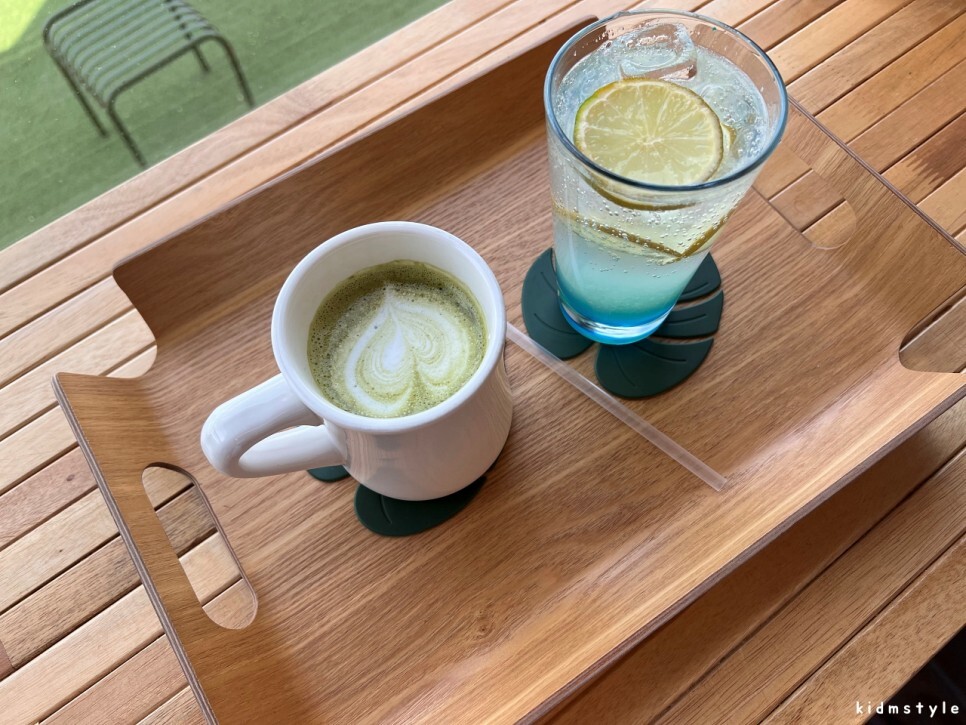 메뉴판을 찍어본다. 녹차라떼와 바다 한잔 라임모히또를 주문하였다.