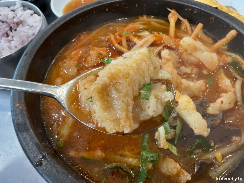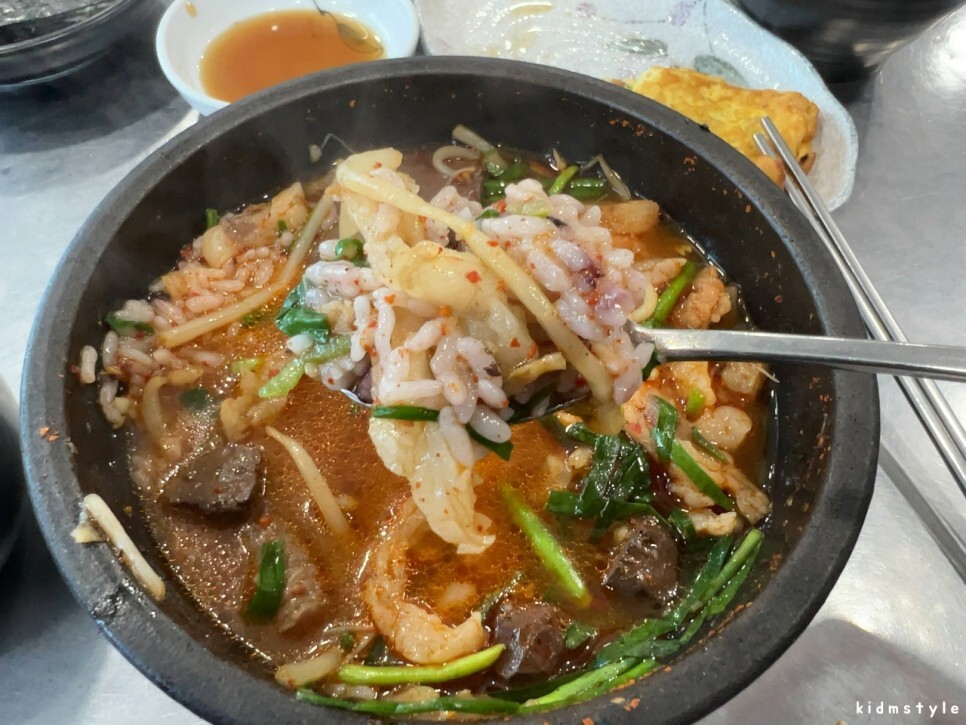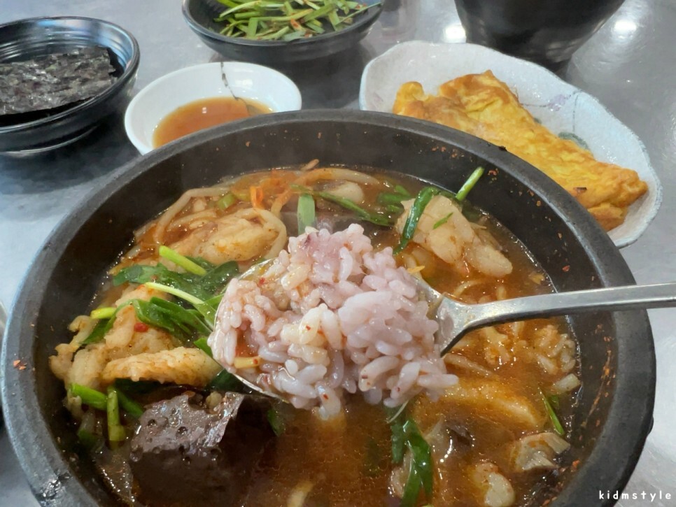 국물에 적셔서 한 숟가락 맛보니 참 좋다. 전날 술도 안 먹었는데 왜 이리 맛있을까? 이 맛을 아는 사람은 군침을 흘릴 것 같다.