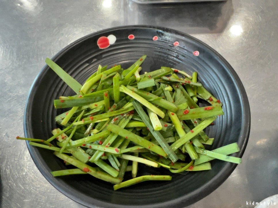 생부추에 가볍게 고춧가루를 무쳐놓았다.