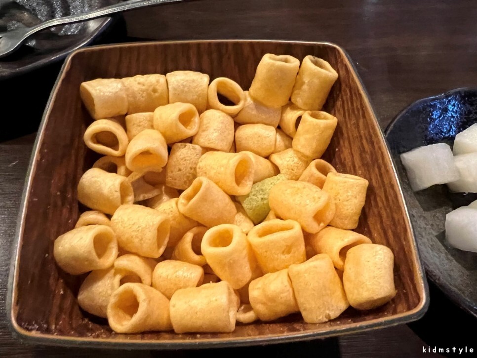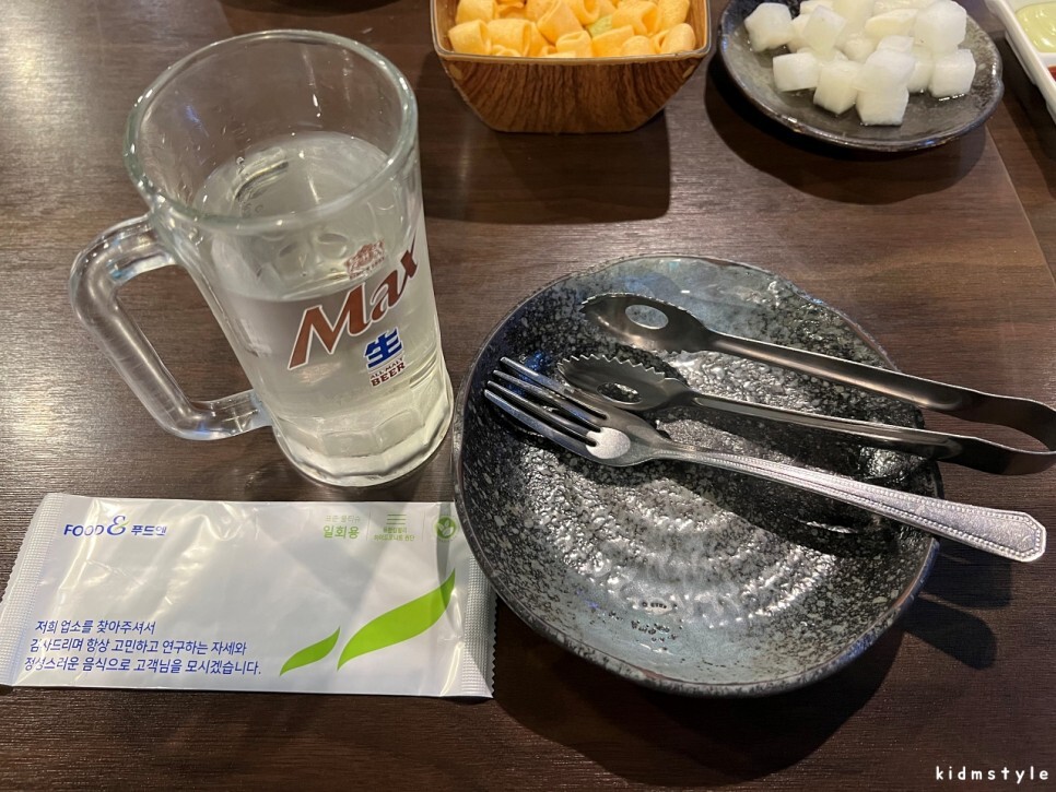 물과 물티슈는 따로 요청을 해야 한다. 앞접시에 집게와 포크를 놔두고 먹을 준비를 한다.