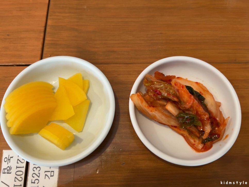 셀프 코너에서 가져온 단무지와 김치