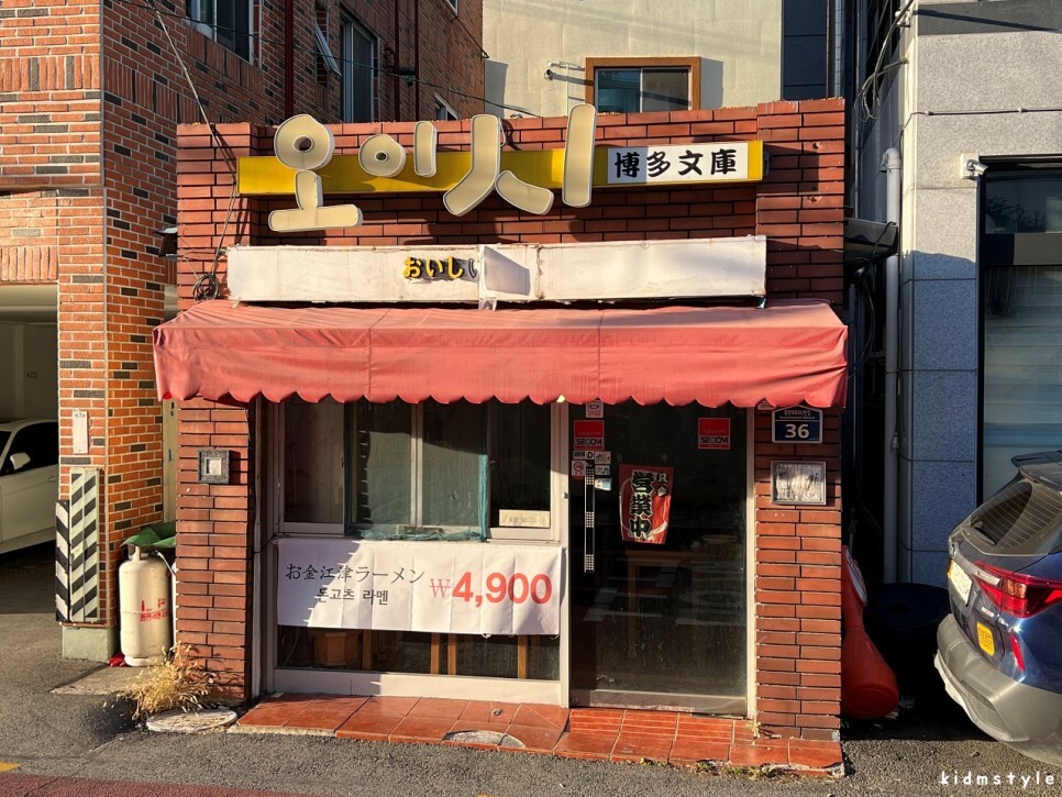 쭉 걷다 보면 오이시라는 간판을 단 식당이 나온다. 돈코츠 라멘이 4,900원이다. 가성비가 좋기로 유명한 곳이다. 부경대 정문 길 건너에 있는 오이시라멘과는 다른 곳이다. 그곳은 체인점이고 여기 오이시는 독립 매장이다. 아주 오래전에 한번 맛본 기억이 나는 곳이다.