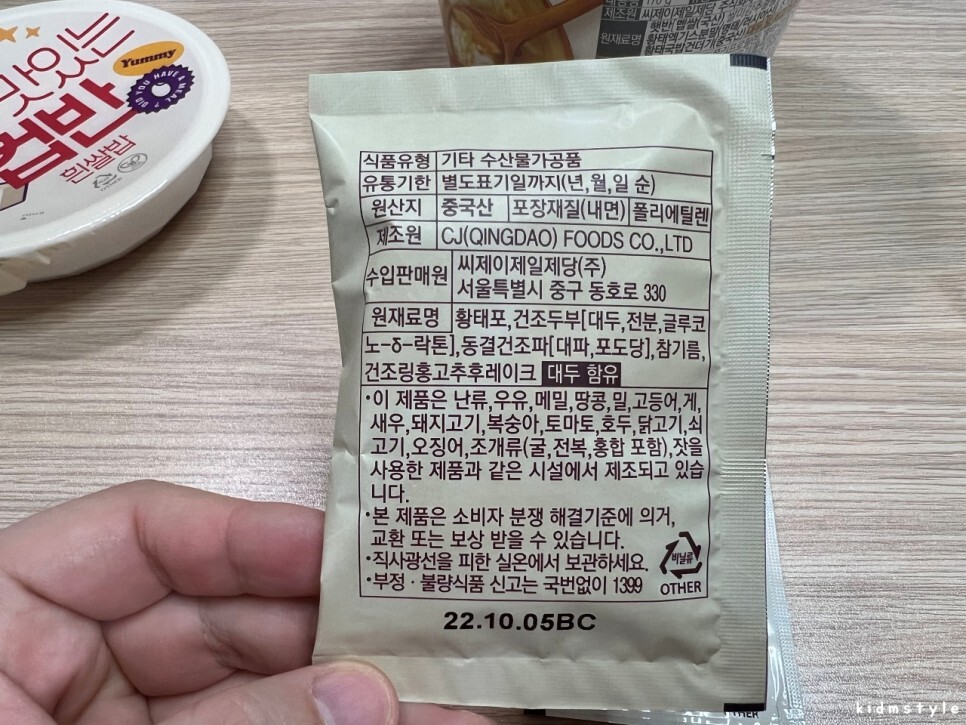 가격은 대형마트 기준 3,980원이다. 물론 제값 주고 사기에는 비싸다. 나는 온라인으로 개당 2,000원 초반에 구입했다. 유통기한은 여유 있다. 70g에 황태 2.3%, 햇반 150g, 황태국밥 밑국물 15g, 황태국밥 건더기 5g의 구성이다.