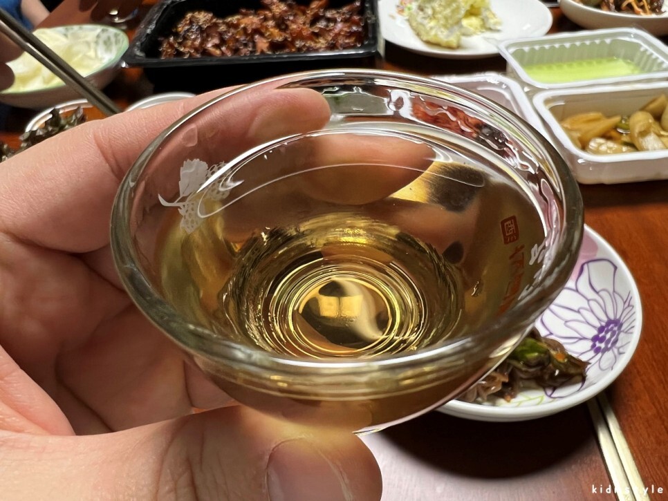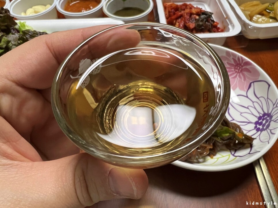 아버지부터 한잔 드린다. 저 뒤에 진로 소주 병이 눈에 들어오네. 요즘 진로만 드신다는 아버지. 내가 대선 소주를 마시는 걸 아시기에 가족 식사가 있는 날에는 대선 소주를 따로 준비해 놓으시는 섬세하신 분이다. 우리 가족의 좋은 점은 각자 취향을 존중해 준다는 점이다. 특히 음식 부분에 있어서 말이다.