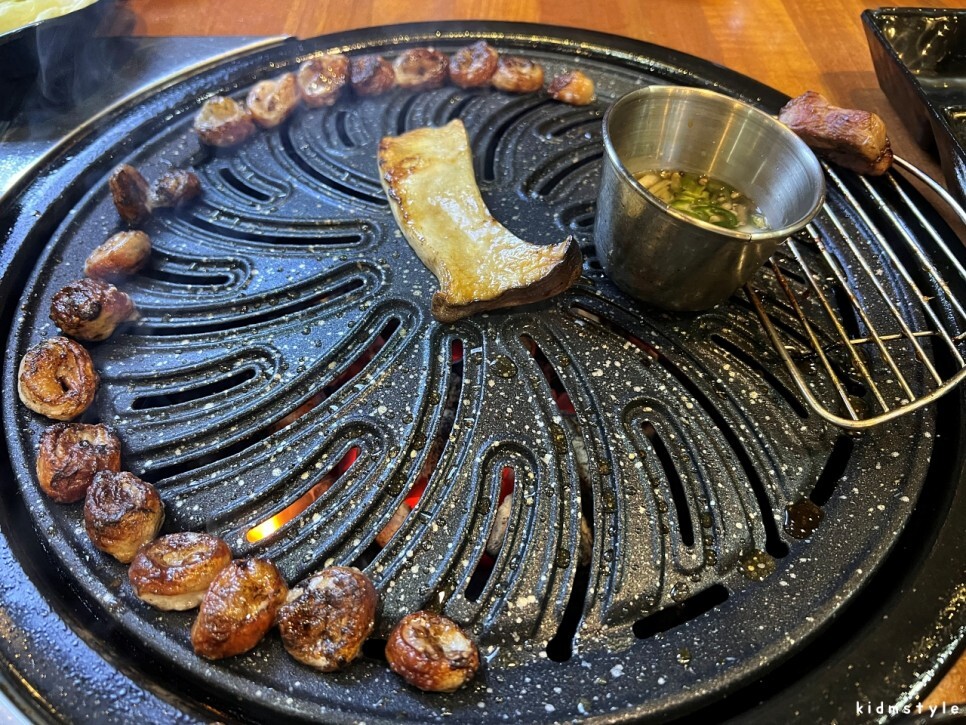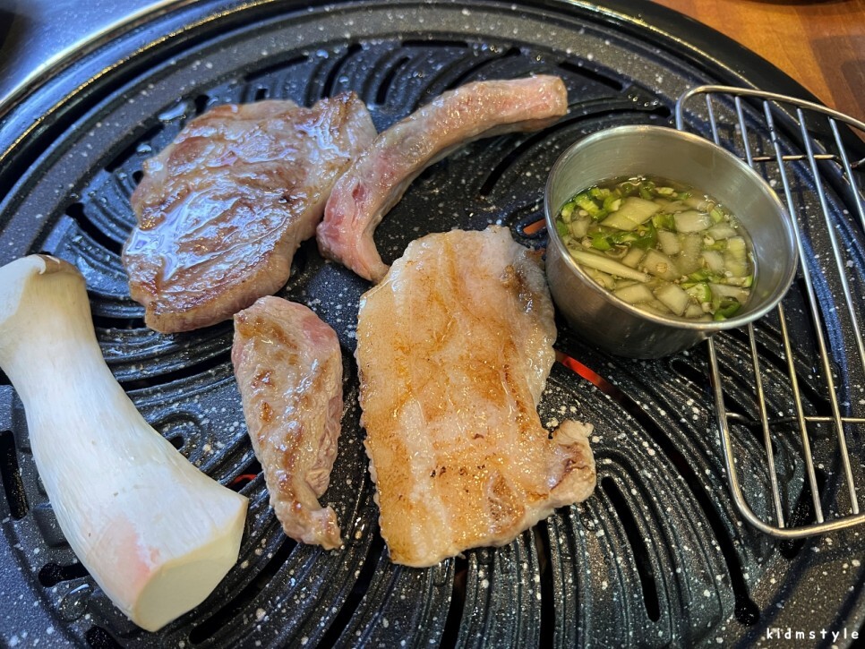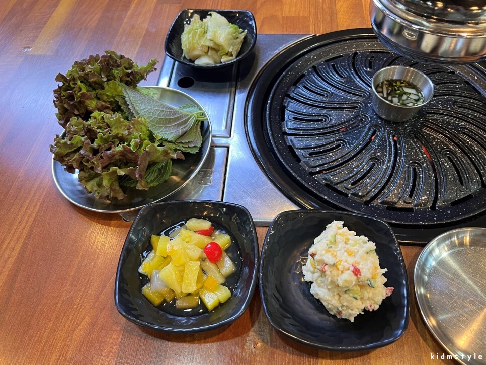 하나하나 차려진다. 이 집은 고기를 직접 구워준다. 하지만 나는 내가 직접 굽기로 한다. 자타 공인 집게 마스터 아닌가!
