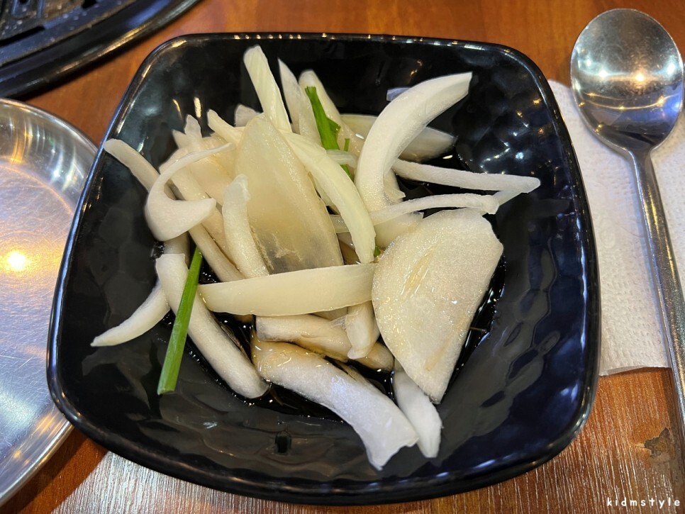 밥반찬으로 나온 무생채는 얇게 잘 썰어놓아서 양념이 잘 베었다.