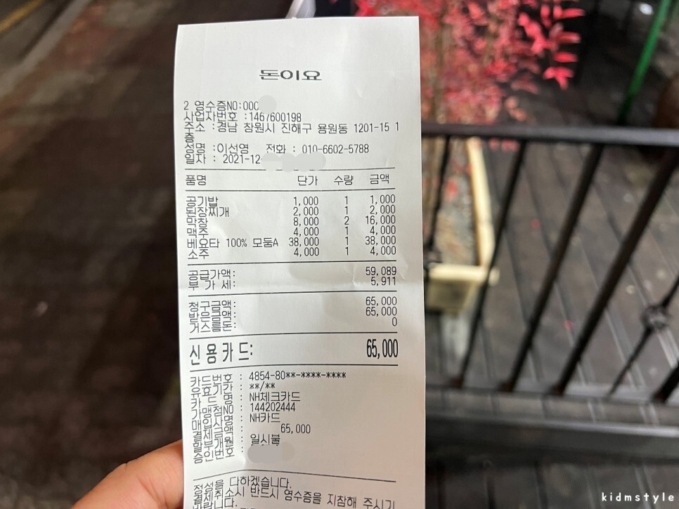 멀리서 왔다고 친구가 계산하네. 고맙다. 덕분에 참 잘 먹었다. 소맥을 독하게 말아 먹다 보니 1병씩만 마셨다. 다음날은 월요일이기도 했고. 용원에서 정말 오래간만에 한잔했는데 만족스럽더라. 용원에서 돼지고기를 맛보고 싶다면 돈이요를 추천한다. 질 좋은 이베리코에 친절함, 그리고 깔끔한 위생 등 전반적으로 참 만족스러웠다.