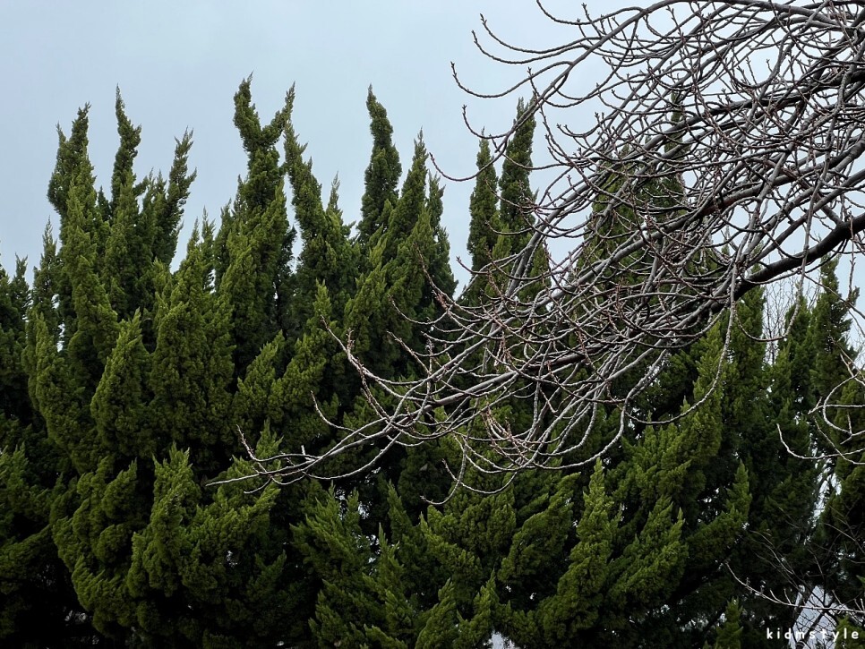 봄이 오고 있지만 앙상한 가지들 덕분에 아직은 겨울 같은 모습이다. 저 멀리 바다가 보인다.