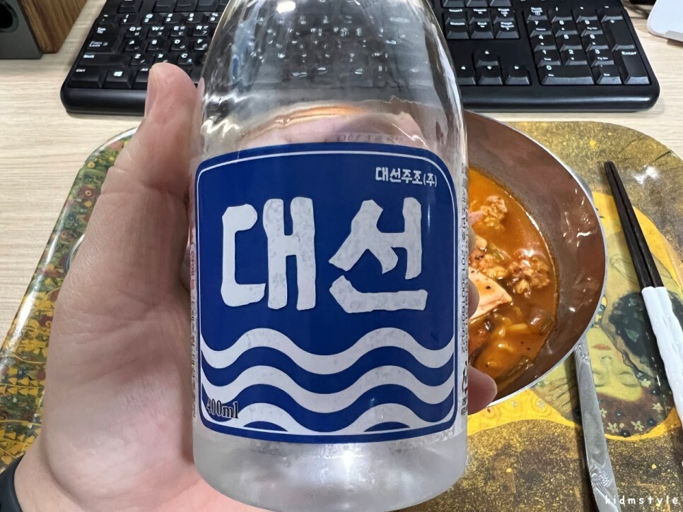 잘 끓인 부대찌개를 가져오니 소주 한잔 생각이 절로 난다. 하루 종일 바쁜 업무로 지친 나를 달래주는 부산 소주 대선!
