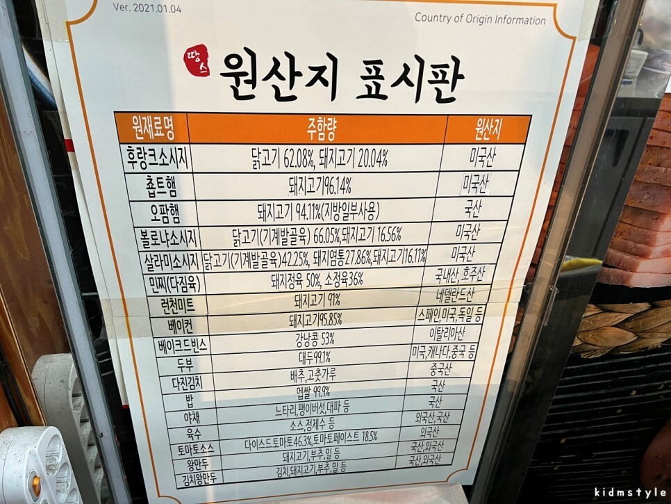 원재료 등 정보 표시판도 있다. 이런 부분 칭찬할만하다.