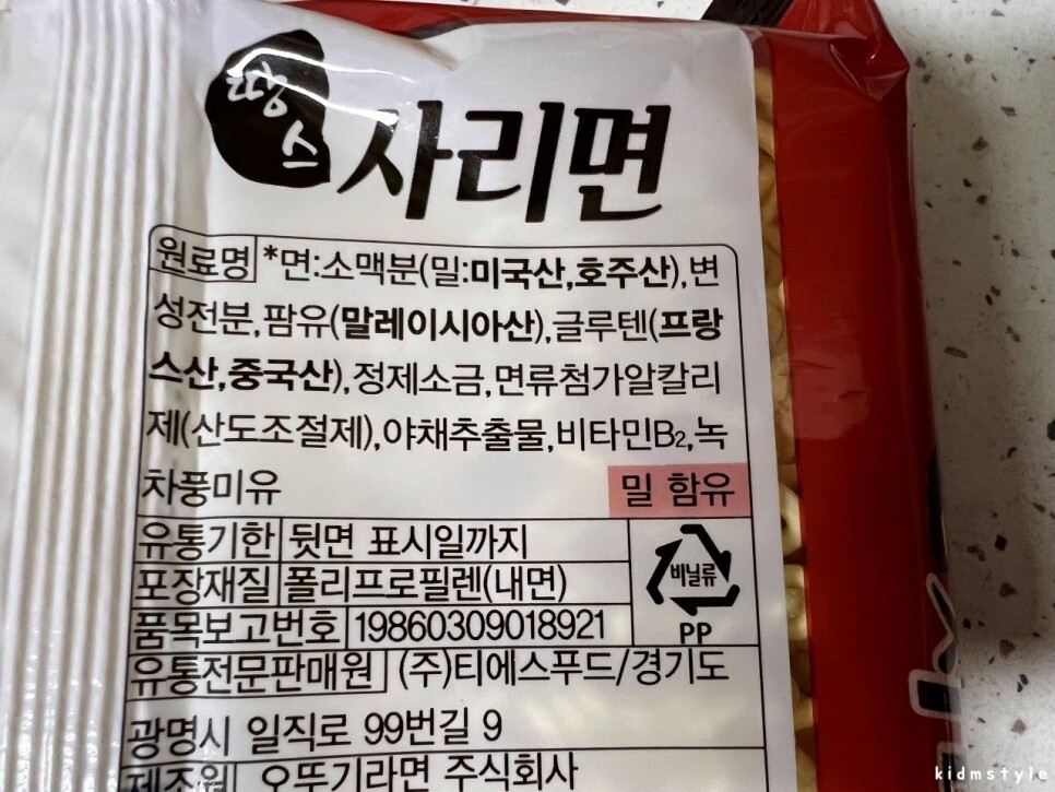 라면 사리는 반만 넣어 준다. 하나 다 넣으면 많다.