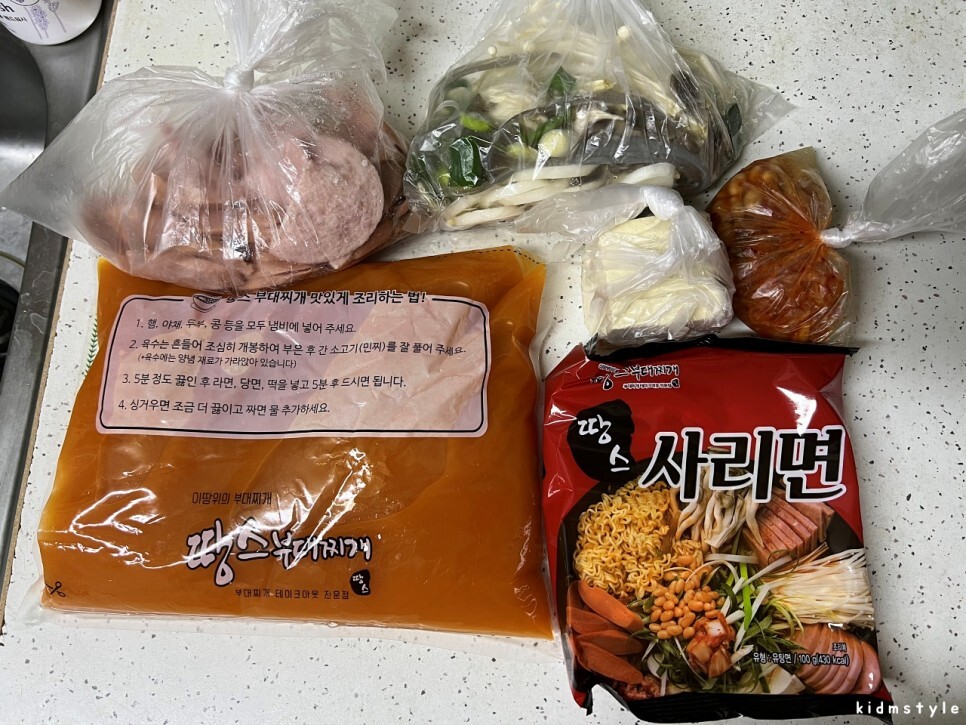 부대찌개 3인분 9900원짜리 한 봉지를 사들고 집으로 향하는 길.
