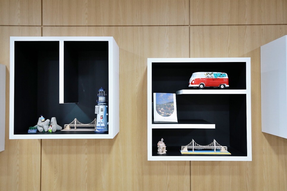 한쪽 벽에는 부산을 상징하는 몇 가지 굿즈가 놓여있네요. 참 귀엽습니다.