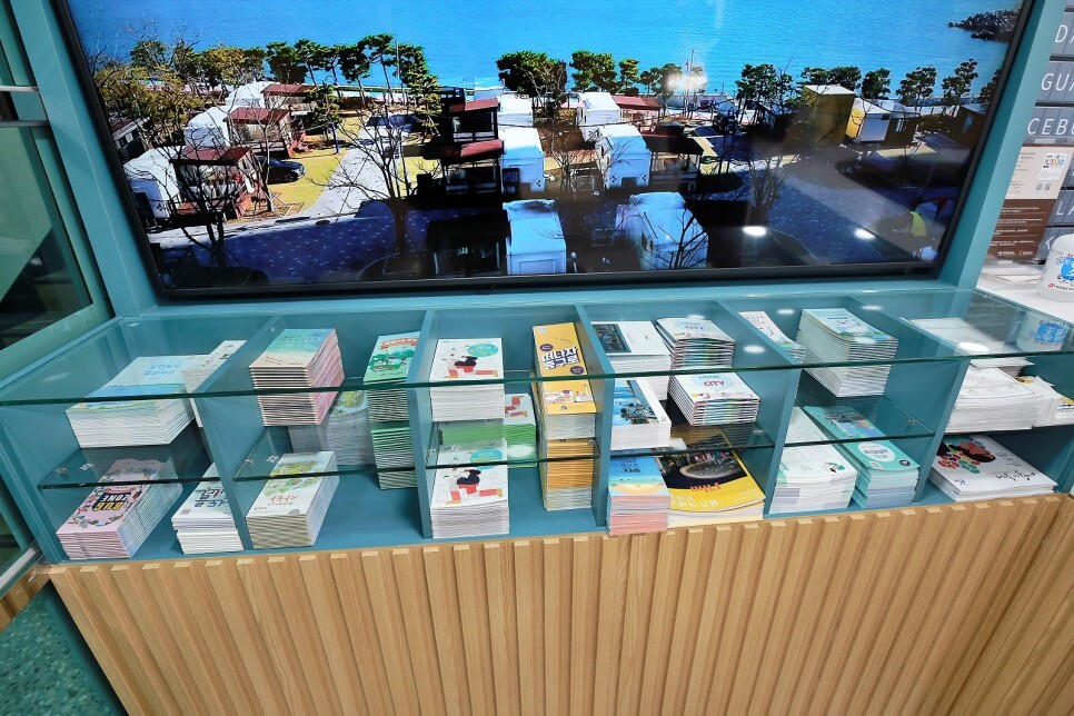 한쪽에는 부산의 각 구별 안내 리플릿이 놓여있습니다. 시티투어 정보도 얻을 수 있어요.