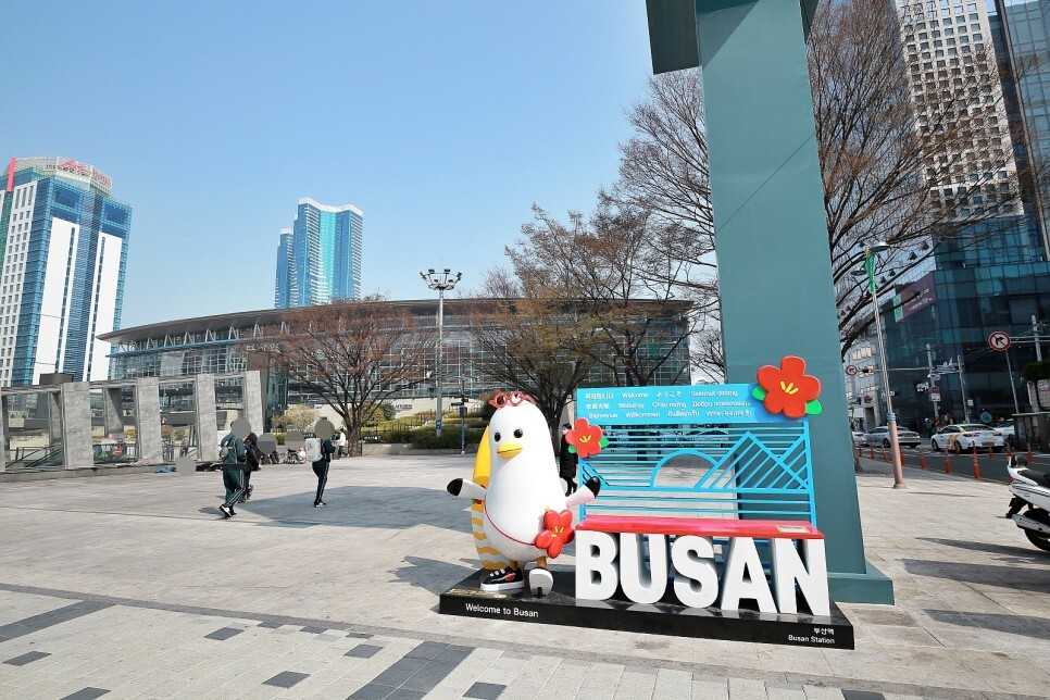 기쁜 마음을 안고 KTX를 타고 부산으로 여행을 오게 되면 맞이하는 첫 풍경입니다. 부산역 광장 한구석에 부산 캐릭터 '부기'가 새로 자리 잡았네요. 부기와 기념사진 한 장 찍어봅니다.