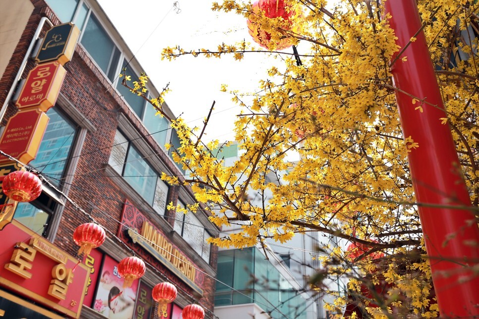 상해거리 한편에 개나리꽃이 이쁘게 펴있네요. 봄을 알리는 소리가 정겹습니다.
