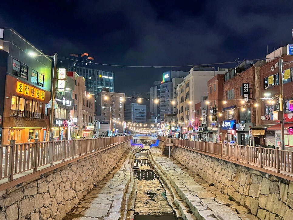 오늘 맛본 초량천 맛집, 차이본양꼬치는 만족스러웠습니다. 양꼬치와 가지 만두 덕분에 기분 좋은 저녁을 맛볼 수 있었네요. 몇 발자국 걸어나와 밝게 빛나는 초량천의 야경을 한번 찍어봅니다. 오늘따라 유난히 빛나는 모습이 더 이쁘네요. 북적이는 초량이 참 좋습니다.