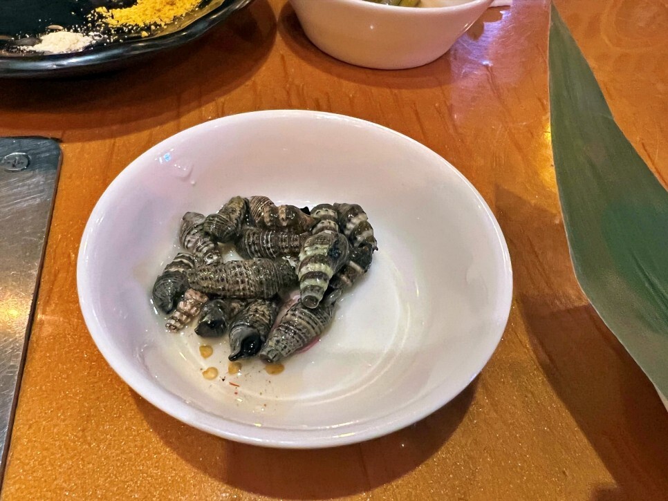 갯고동도 리필해 봅니다. 짭조름한 게 입맛 돋우기 참 좋네요.