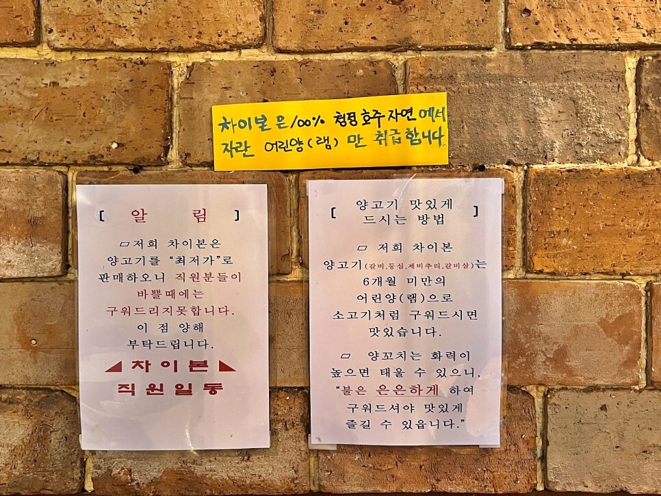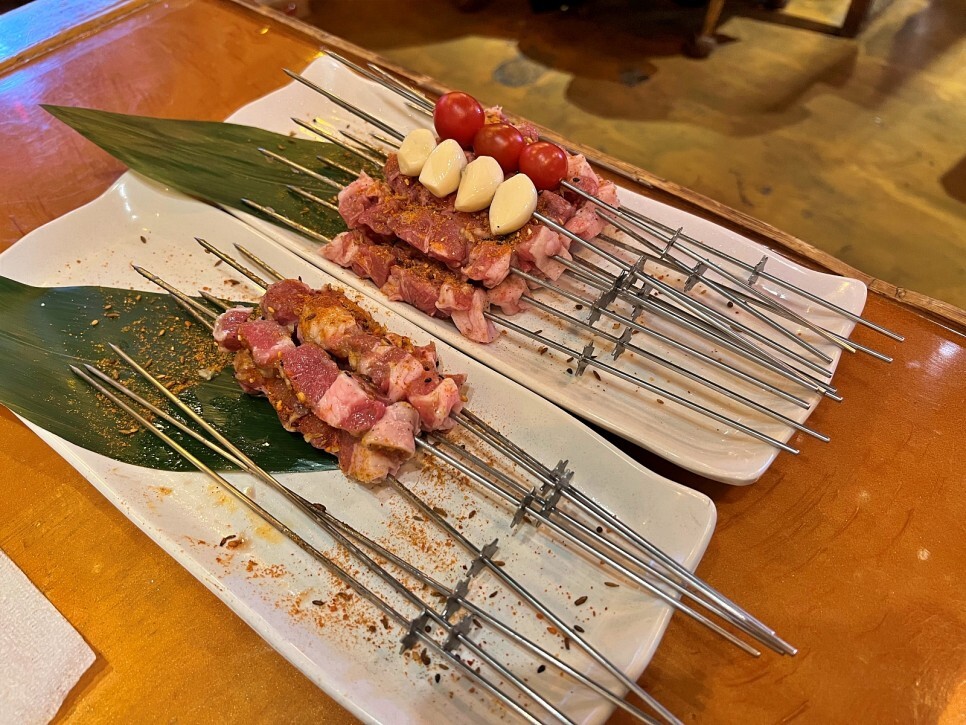 이곳의 양고기는 호주에서 자란 어린 양만 취급한다고 하네요. 양꼬치는 화력이 세서 구울 때 탈 수 있어요. 조심히 은은하게 잘 구워야 합니다.