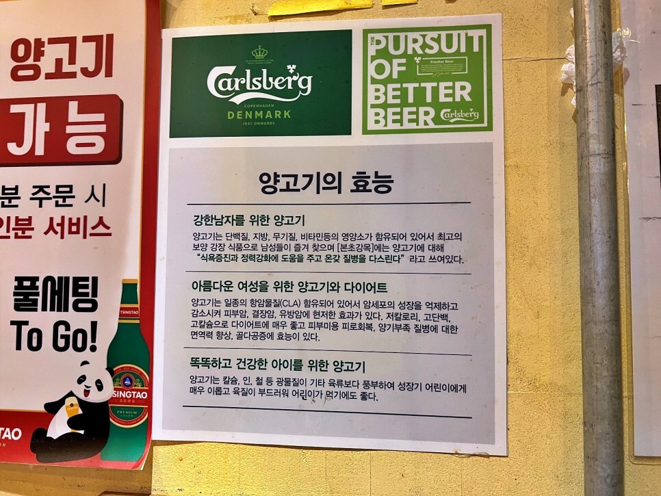 주문을 하고 둘러보니 양고기의 효능이 눈에 들어옵니다. 남녀노소 모두에게 참 좋은 양고기입니다. 자주 먹어도 참 좋아요.