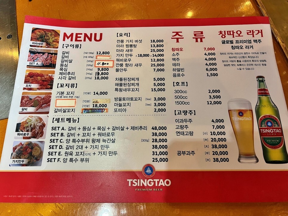 다양한 메뉴가 있네요. 양꼬치 2인분과 가지 만두 소자를 주문해 봅니다. 소주 한 잔도 빠질 수 없죠.
